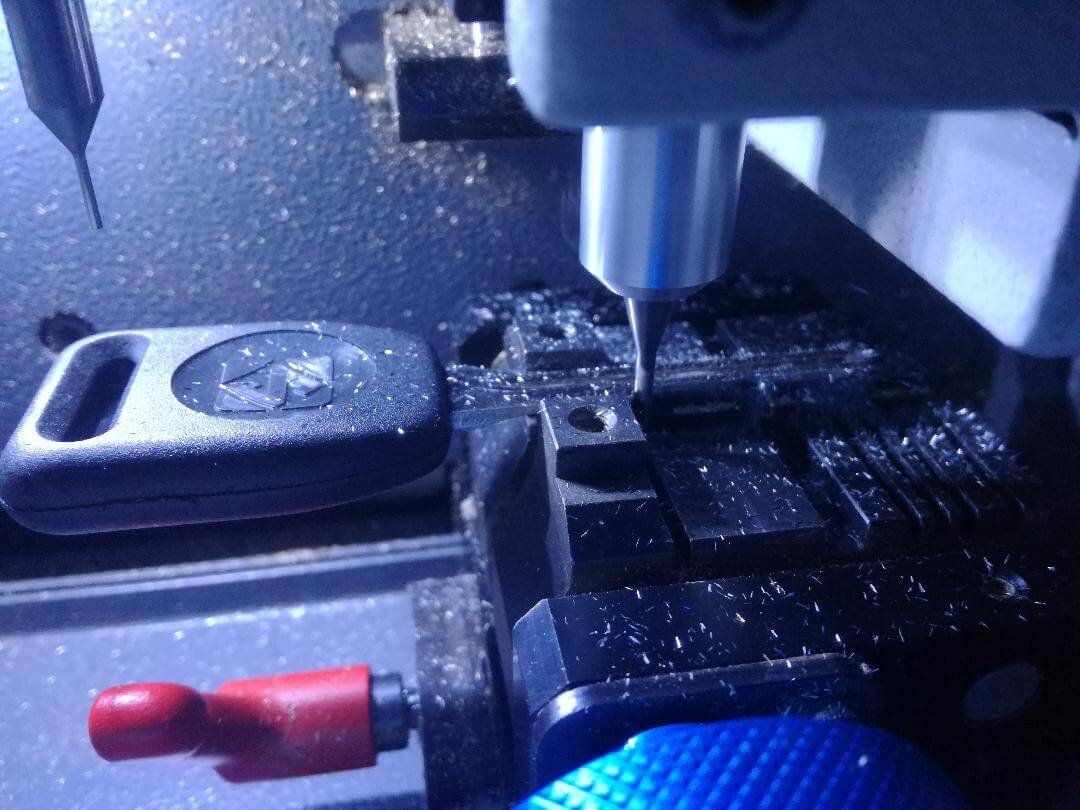 This is the snapped key held together in the trace cutting jig. It was necessary to reproduce a one piece copy of the snapped key. Only a key in one piece could be decoded by the computerised cutting machine.
