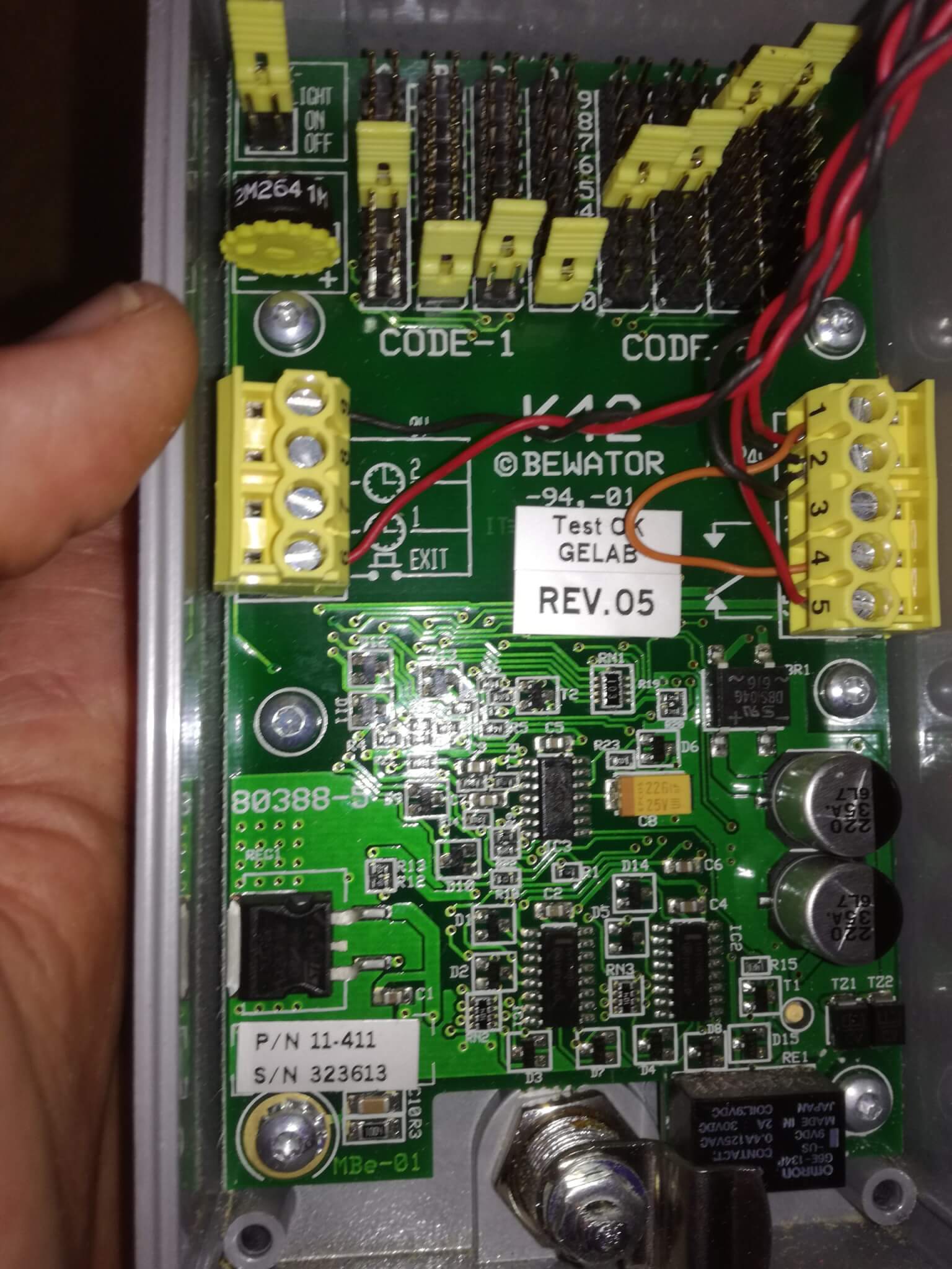 This is starting to fault find an access controlled door that was not locking. The Bewator K44 controller (pictured below) and the door release buttons were found to be working fine. The problem was in the magnetic lock mounted above the door.